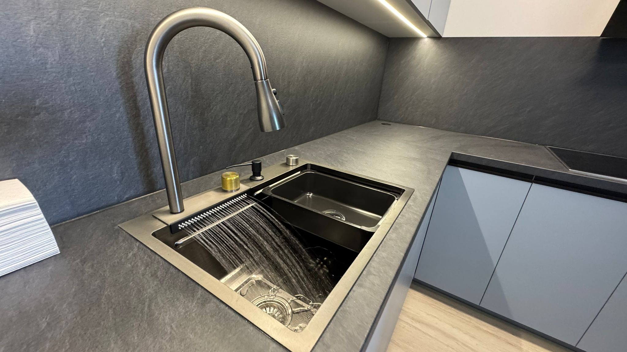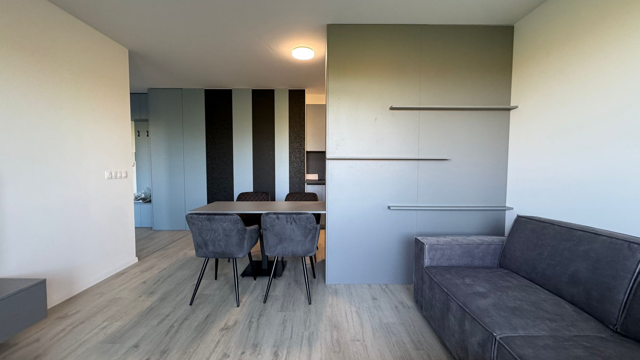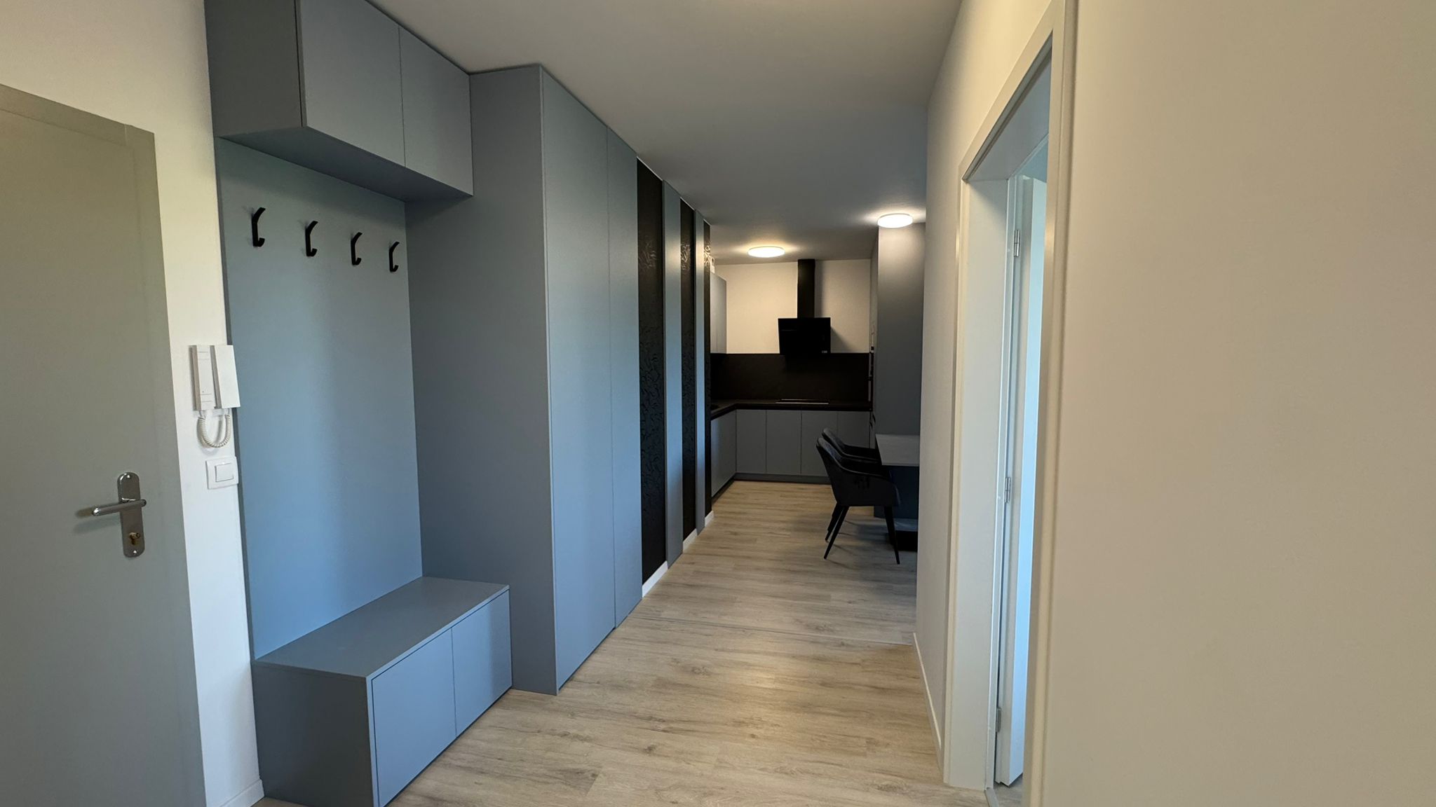úplne nový, nabytok zariadený na mieru (kuchyňa + vstavané úložné priestory)
